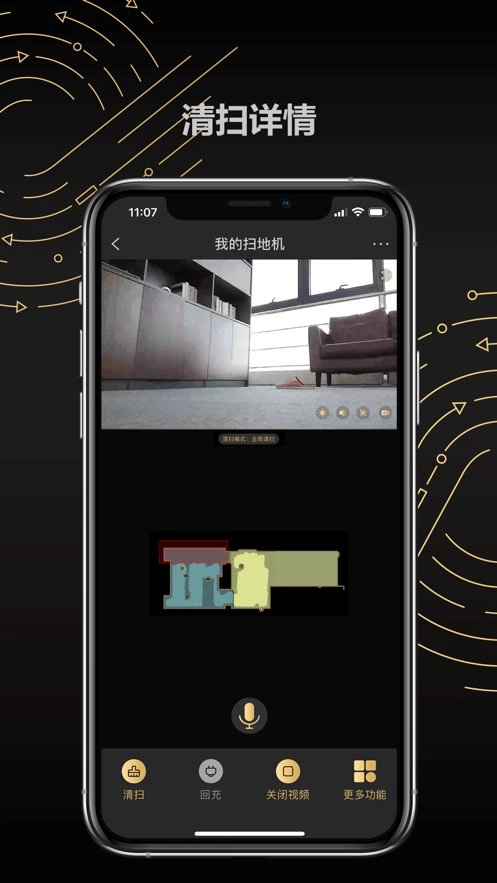 包括清扫时间,清扫面积,清扫地图,电池电量等。