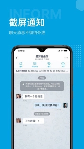 ·截屏提醒:在通讯过程中,若有截屏操作会即时发送通知提醒,重要信息因此无需担忧外泄风险,为您提供贴心的安全守护;