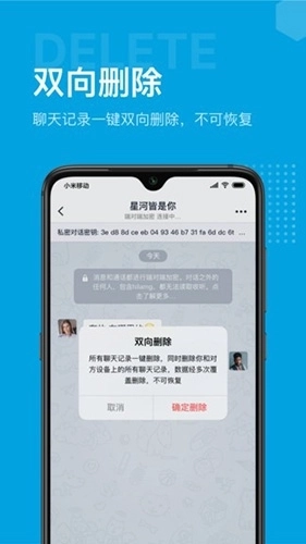 ·双向删除功能:聊天记录支持一键双向清除,您与对方均无法恢复,为您带来更周全的安全保障体验。