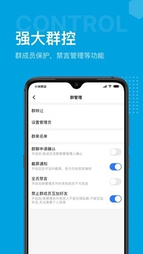 拥有禁止群成员发言、阻止群员互相添加好友、强制撤回广告信息、开启刷频慢速模式、设置管理员权限以及付费加入群组等多种管理功能。