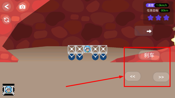 2、进入关卡操作界面后,借助右侧的方向按钮操控载具的移动方向,同时搭配“刹车”按钮来调节速度,从而完成对载具行驶状态的控制。