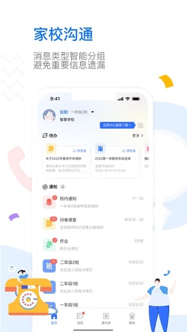 这是一个能让家长及时接收老师所有消息的家校互动平台,重要通知会直接推送,家长可在此直接参与互动讨论各类内容。它还是一个可自主组建的线上班级群聊工具,能对各类数字化转型进行系统性优化。