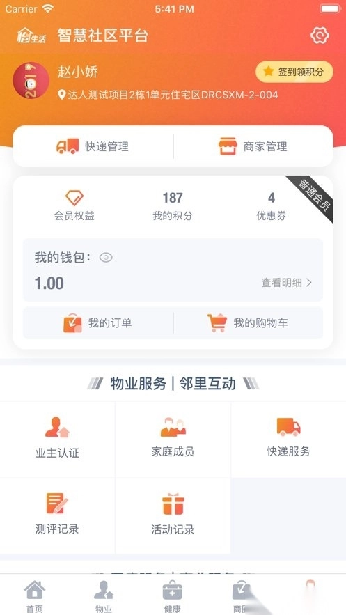 这是为居民生活提供保障的智慧生活服务,业主在日常生活消费或预约各类服务时都能累积积分,用积分可兑换心仪的商品;同时,社区的最新动态与公告信息也能实时掌握。