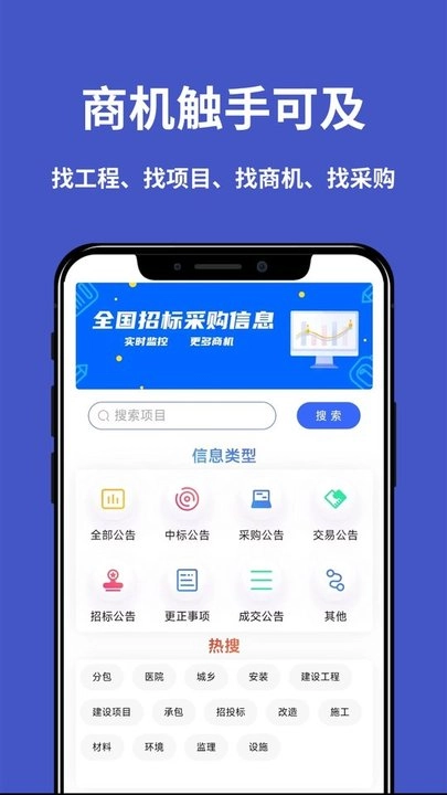 拥有多类型的招投标信息,用户可以获取到多种类型的信息来在线查看获取。