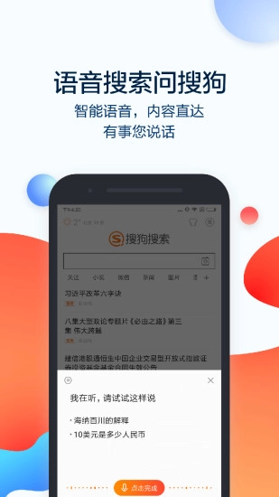搜狗搜索App是搜狗公司研发的一款手机网络应用。该应用具备语言输入、搜狗便利贴、本地搜索等功能,其首页还设有搜索入口、小说、新闻、应用、实时搜索热点、天气预报等服务板块。