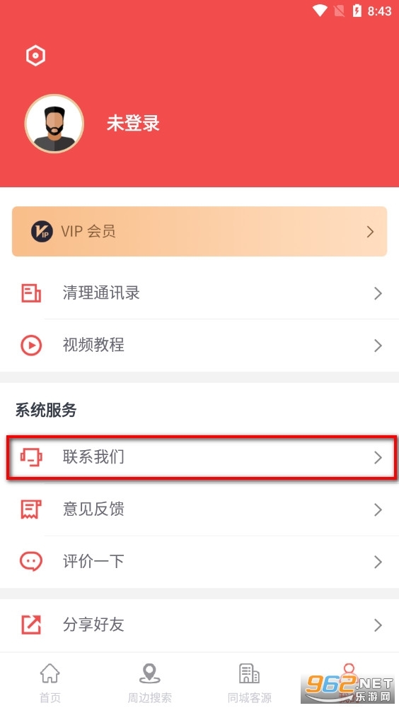 2、选择系统服务中的【联系我们】。