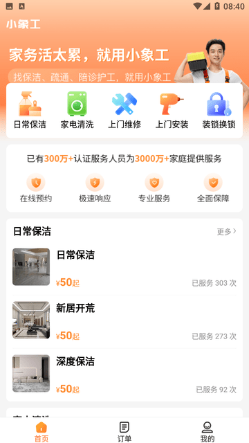 超300万经过认证的服务人员在线接单,随时响应您的需求,确保能及时为您提供服务。
