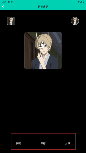 2、在头像详情页面,用户可以对心仪的头像进行【收藏】【保存】或【分享】操作,以便留存或传播自己喜欢的头像。