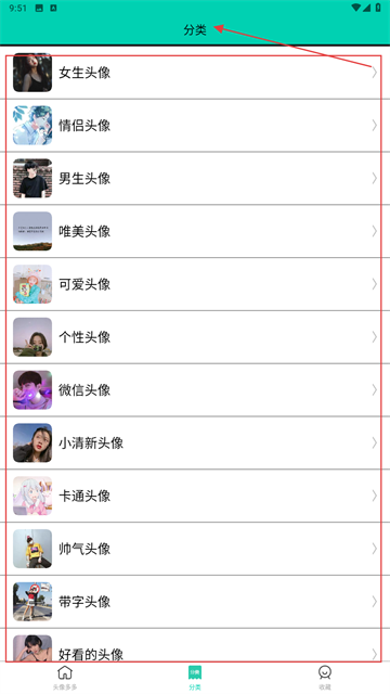 3、进入【分类】页面后,可根据自身需求点击【女生头像】【情侣头像】等对应的分类选项,以此来更精准地找到想要的头像。