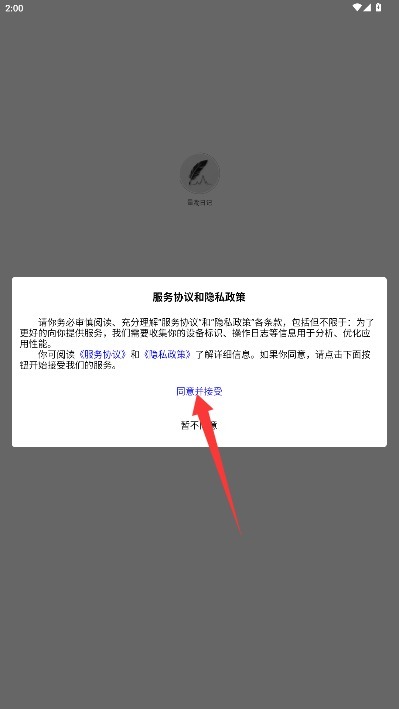 1、首次使用本应用前,请仔细阅读平台的服务条款和隐私政策,在确认无误后,点击“同意并接受”按钮即可进入应用。