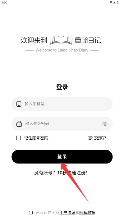 3、回到登录页面,输入手机号和密码,勾选服务协议后点击登录按钮,即可进入个人中心。