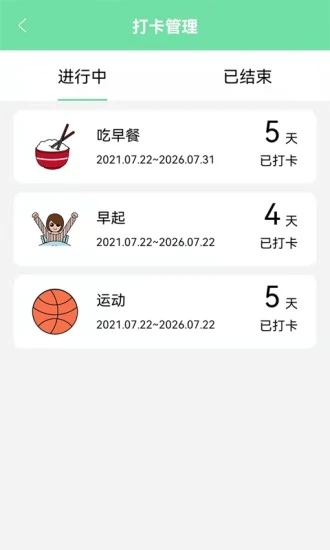 设定目标管理能助力日常目标的推进,无论是减肥、学习、运动、读书还是早起等好习惯,都可以通过打卡来坚持,每天积累一点进步,让自己逐步变得更优秀。培养健康的生活习惯,借助目标计划管理来提升自制力,选择自己向往的生活方式,勇于挑战自我并达成目标。