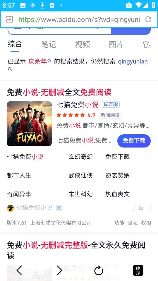 3、这里以“庆余年”为例,直接点击搜索按钮就能看到对应的内容了。