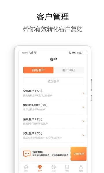 6、配备短信营销功能,可快速向客户推送短信内容,助力客户高效转化;