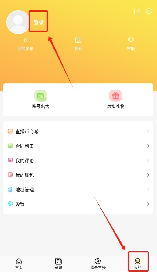 1、启动主播之家应用,在屏幕底部的菜单栏里找到“我的”这一选项,点击该选项就能进入个人页面。