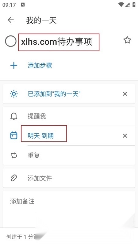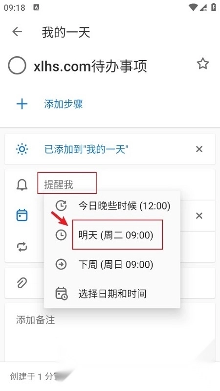 5.若有需要,可给任务设置提醒通知,这样就能保证第二天及时收到提示。