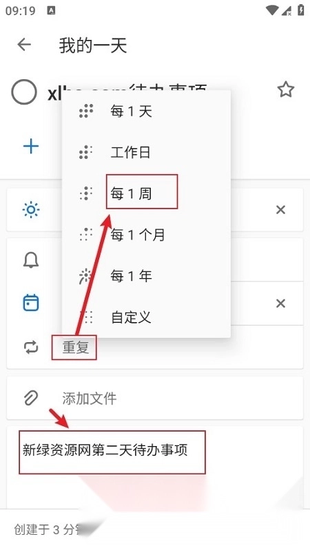6.你还能给任务添加详细备注,或是设置重复周期,这样就能在之后的指定日期自动生成该任务了。