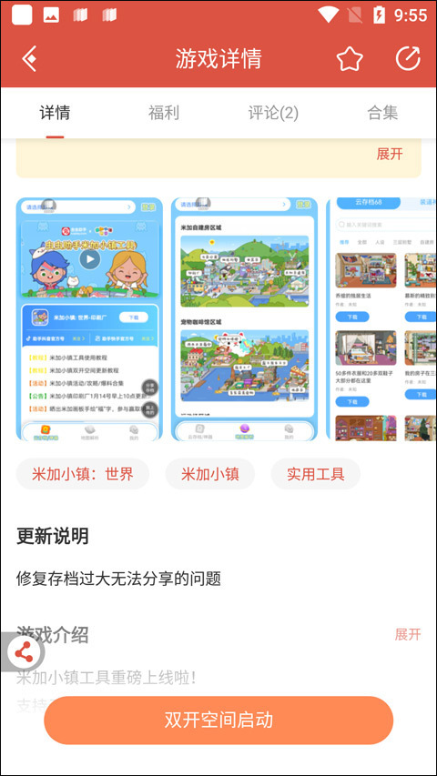 1、在游戏详情页的游戏和工具板块中,选择“双开空间启动”选项,就能打开相应功能。