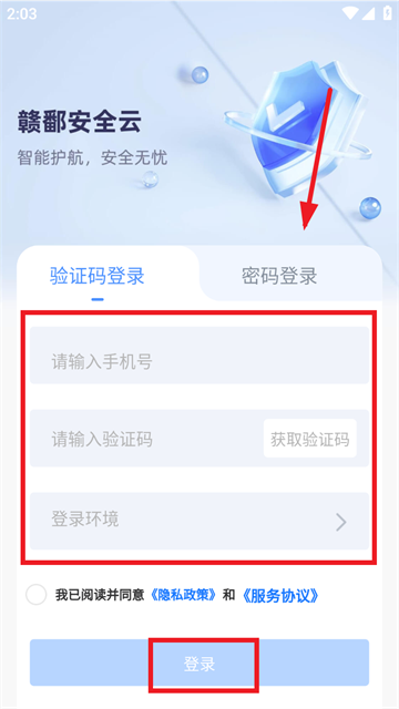 3、填写手机号、验证码,选定登录环境后点击登录,即可完成注册流程