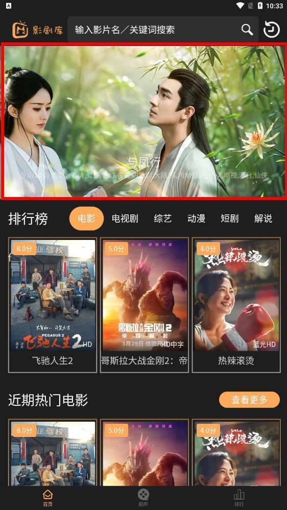 1、在本平台搜索影视库应用,完成安装后打开进入首页,即可观看系统智能推荐的剧集内容