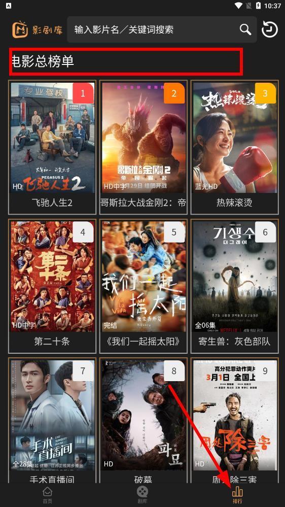 3、或者进入排行选择电影或者电视剧观看高评分剧集