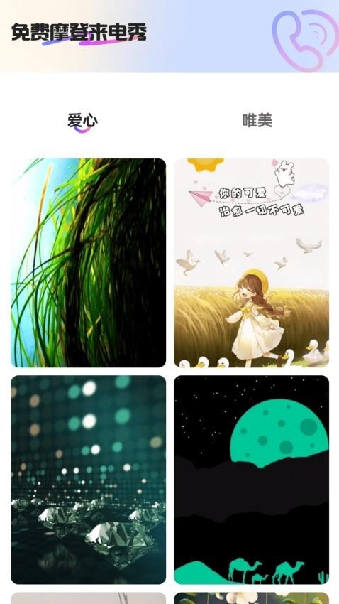 免费摩登来电秀是一款实用的来电铃声库软件,的各类工具均可直接解锁使用,能为用户提供优质的服务体验。它不仅能呈现出高品质的铃声效果,操作还十分简便,拥有丰富的来电资源,支持个性化铃声一键设置,让用户享受绝佳的视听感受。软件界面设计简洁直观,便于快速完成来电秀设置,感兴趣的用户不妨尝试一下!