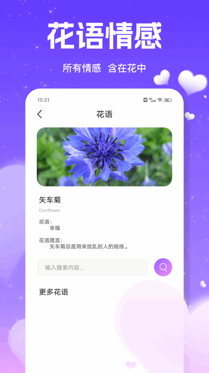 2、呈现了各类花朵的花语内容,用户通过查询花语,就能挑选出最适合赠予异性的花朵。
