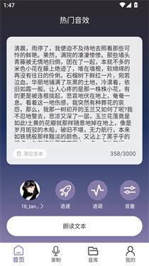 上传音频样本后,系统会精准模仿该语音特征,最终生成与原语音高度相似的语音内容。