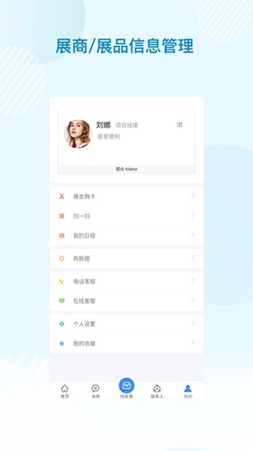 2、能够快速发布各类信息,和观众开展在线互动交流;借助日程管理与即时提醒功能,可及时进行事务管理,还能提前预约观众见面洽谈。