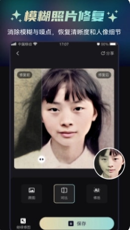 1. 简单易用的修图功能,能让用户轻松一键修复儿时的珍贵回忆。