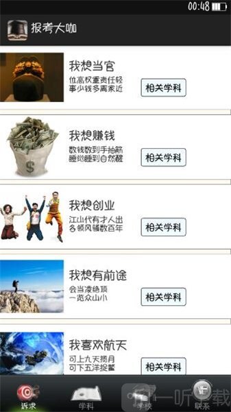 2. 按照申请者的需求直接推荐对应的科目!这些需求是大多数学生内心真实的想法。