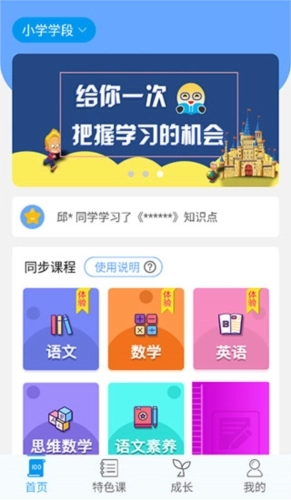 3、进入首页后,界面就像下面图中展示的那样,能看到有不少同步到自己所在年级的课程。