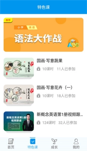 8、当然,软件的“特色课”板块还设有不少课本之外的特色课程供用户学习,像英语发音、国画等。
