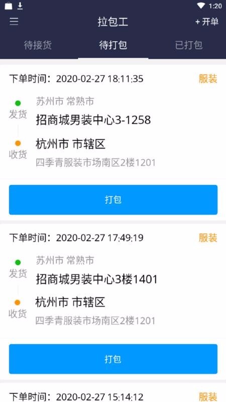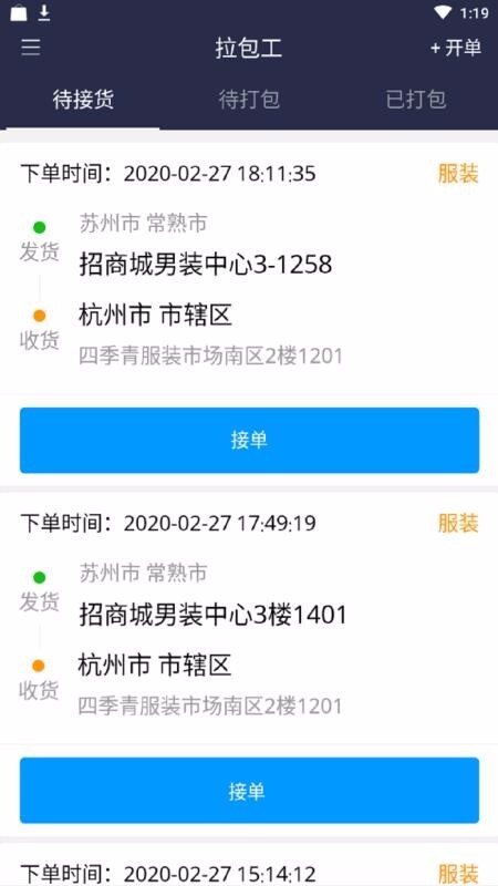 工作人员可以在未接货的选项下方选择接单,点击后即可进行接货和处理订单。