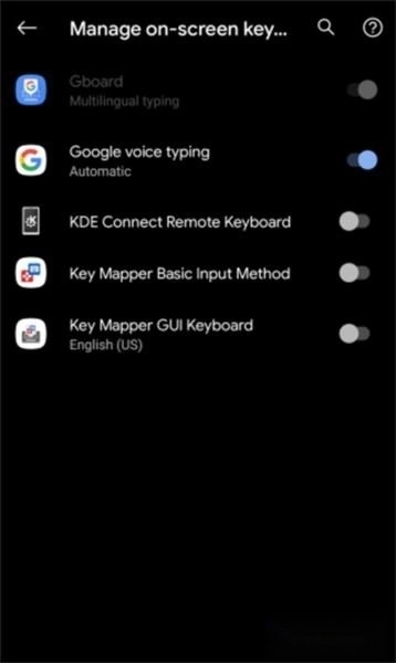6、再次执行该操作,输入法选择器便会弹出,具体效果如图所示。在Android 11及更高版本系统中,若您已开启辅助功能服务,Key Mer能够在不调出输入法选择器的前提下帮您解决这一问题。