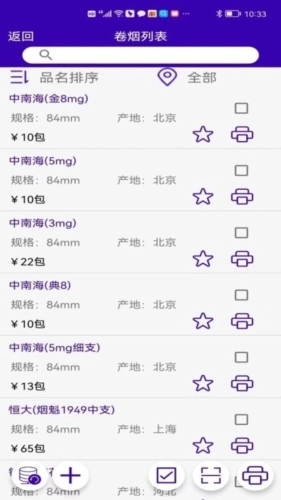 可以通过扫描卷烟条码、商品条码或收款码对应的商品条码来完成打印操作,也能够直接从数据列表里进行打印。