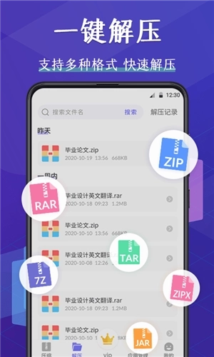 1、解压速度十分迅速,不管是小型文件还是大型文件,都能在短时间内完成解压,方便您在需要的位置使用;