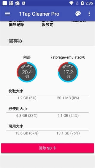 单键清除所有应用所产生的快取档案