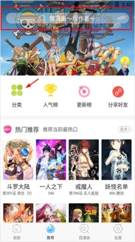 1、先在本站完成软件安装并打开,用户既能够通过搜索名称和作者名查找漫画,也可以依据分类去发现精彩的漫画;