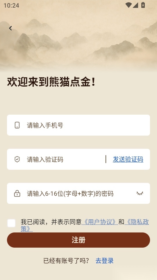 2、打开软件的登录界面,输入手机号后点击“发送验证码”,待收到验证码并填写完毕,再点击“登录”按钮即可进入应用。