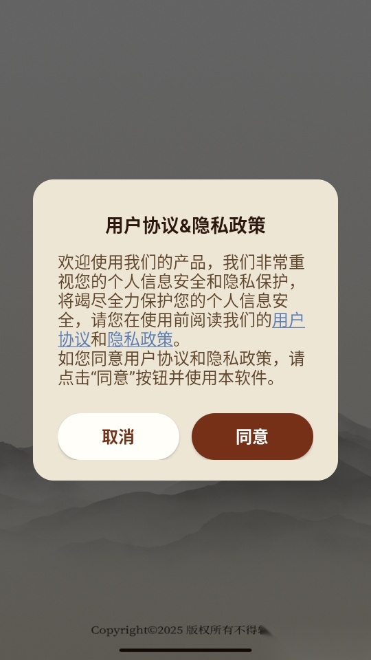 打开应用软件后,点击“同意”用户协议与隐私政策即可进入软件。