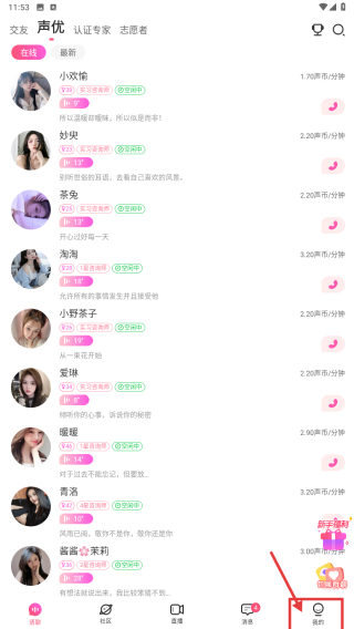 1、启动语音类应用,点击底部的“我的”选项,进入个人中心界面。