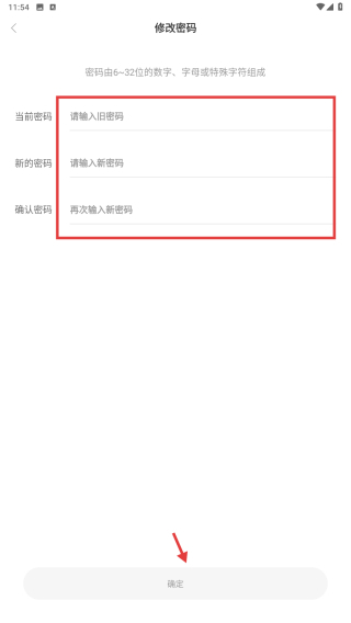 4、按顺序输入旧密码、新密码并进行确认,点击确定按钮后,即可完成密码修改的操作。