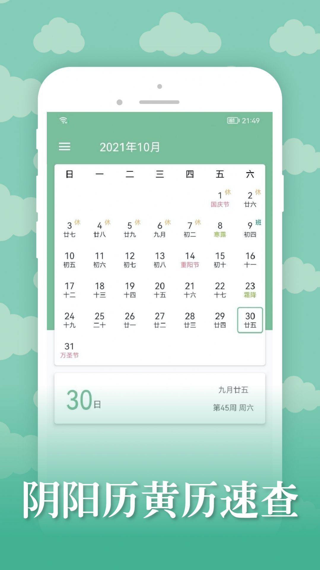 1、有了这款软件,用户能便捷查看日历、每日运势、节假日等相关信息。