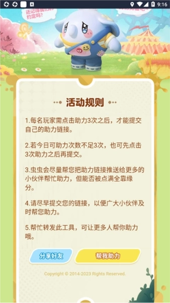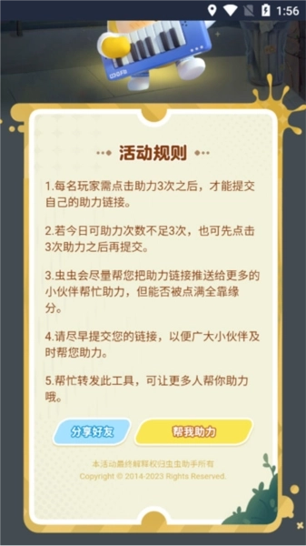 1、打开软件后,即可看到“分享好友”和“帮我助力”这两个主要选项。