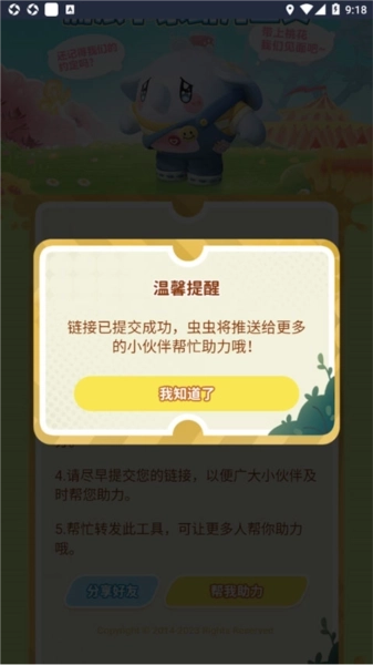 3、虫虫会努力帮您把助推器链接推送给更多朋友请求协助,不过能不能让所有朋友都点击,就得看运气了。