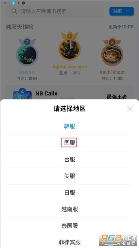 数据,你也可以通过搜索栏右侧的下拉菜单选择国服,来查询对应服务器的战绩。