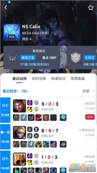 4、点击排名榜上的ID,能够查看该用户的最近战绩、实时战绩,以及近期的组队玩家信息,此外还包含常用英雄等内容。