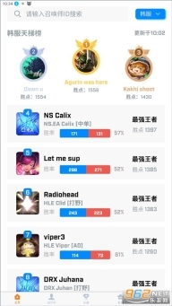 《中韩排行》是一款专业的英雄联盟战绩查询软件,支持查看最新