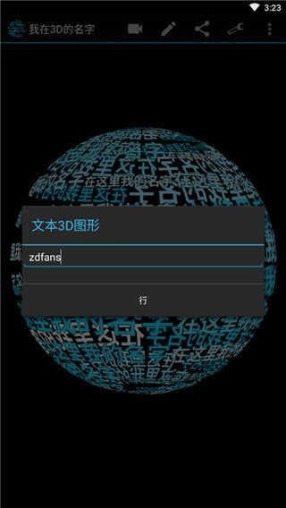 我在3D的名字是一款全新上线的手机壁纸软件,用户使用这款软件就可以将自己的名字或其它文字制作成3D动态壁纸,就像一个文字构成的球体在旋转,十分的炫酷,文字大小、颜色等都可以定义,轻松制作出专属壁纸,喜欢的用户快来吧!